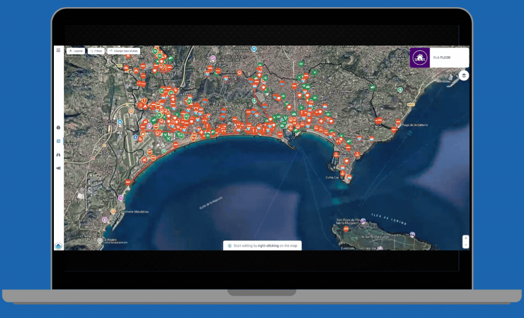 The platform is a full-web platform, with a central mapping system giving users rapid access to information on risk awareness, crisis management procedures to be implemented, real-time hydrometeorological events, alert reception parameters for their territory and a logbook for event management.